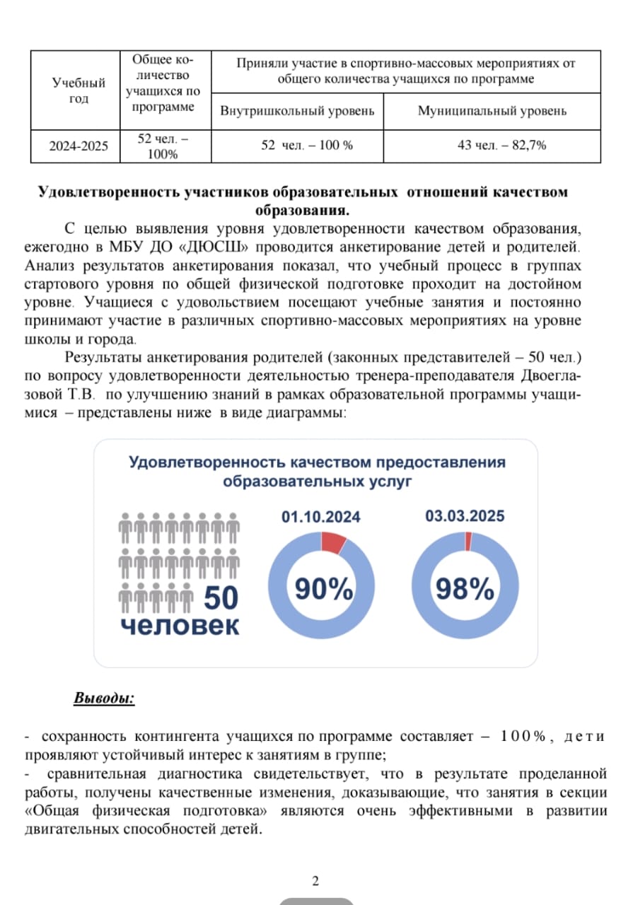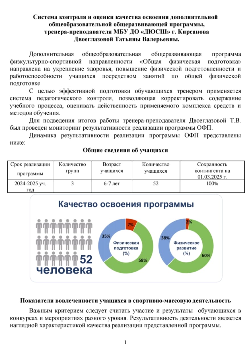 Сведения о качестве реализации доп. общеобразовательной программы ОФП (1)